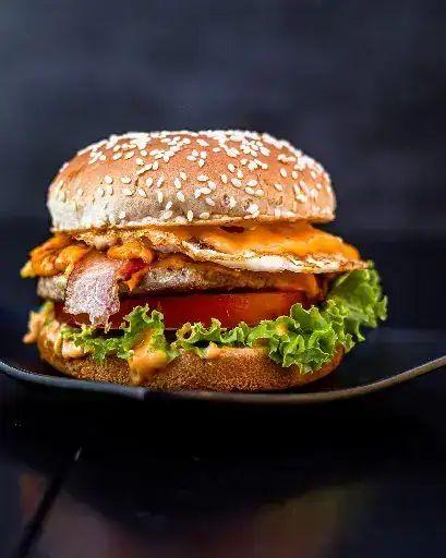 Pão, 2 Hamburguer, 2 Ovos, Bacon, File de frango, Calabresa, Queijo, Presunto, Alface, Tomate, Milho, Batata Palha. Acompanha Maionese Temperada.